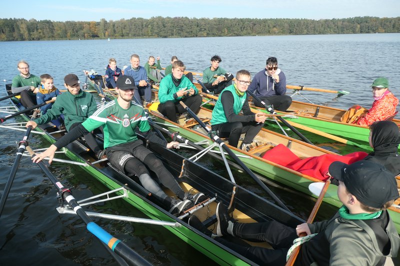 Deshalb traf sich die Ruderjugend vom RCKW am ersten Oktoberwochenende kurze Hand zu einer Tageswanderfahrt mit Mittag und Spieleachmittag im Bootshaus.